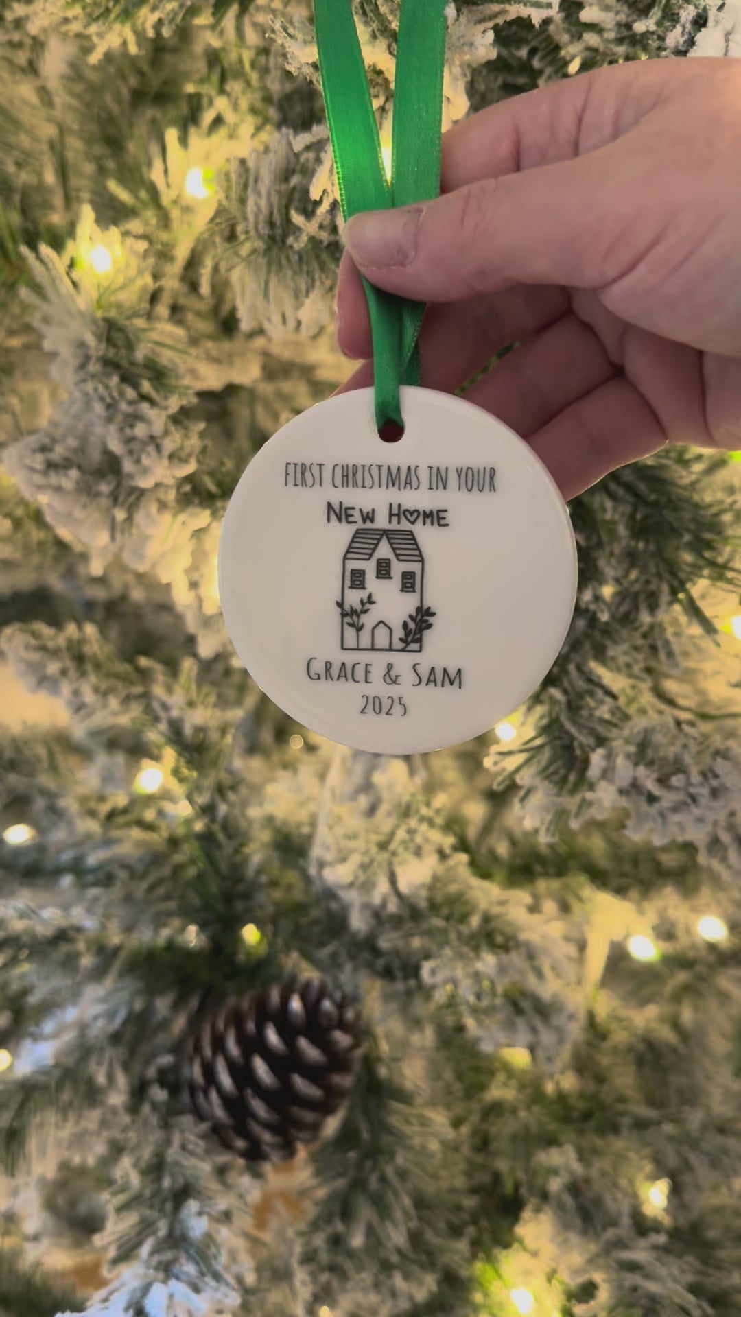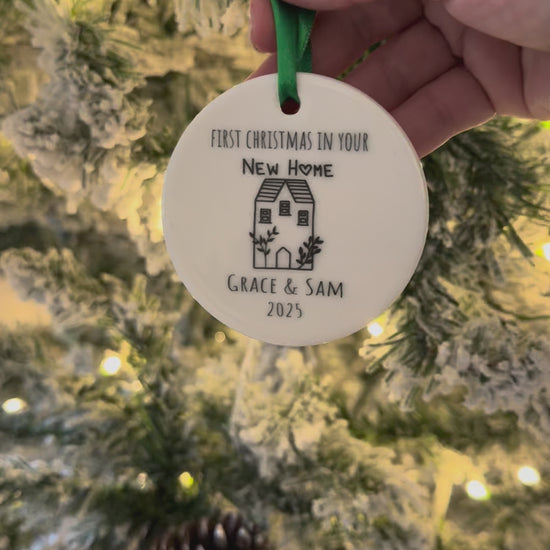 Personalised First Christmas In Your New Home Ceramic Bauble Tree Decoration
