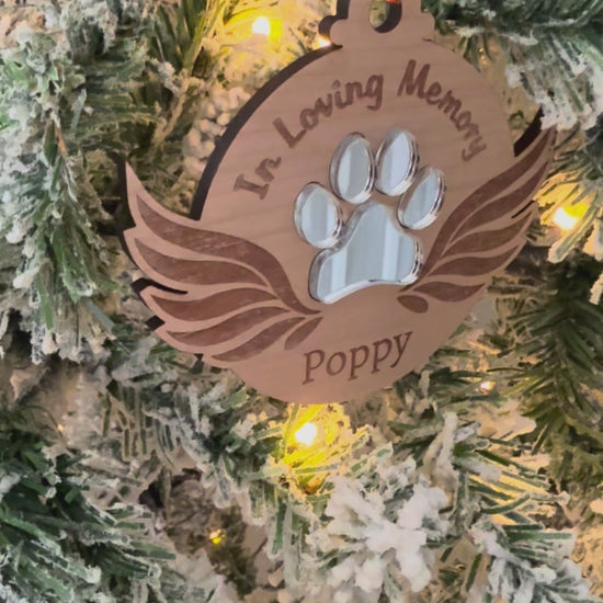 Personalised Pet Memorial Bauble with Angel Wings – In Loving Memory