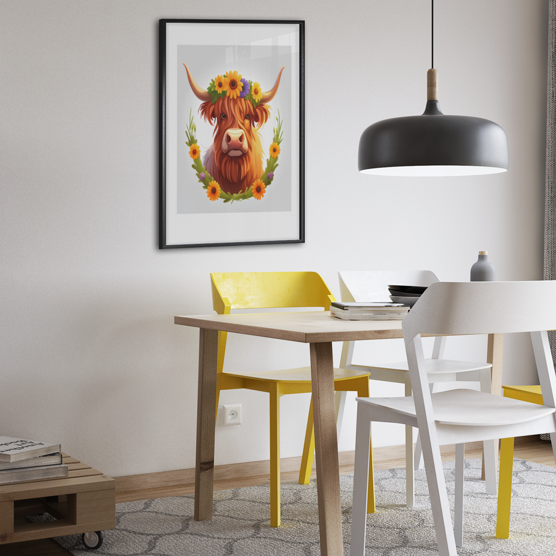 4. **Botanical Harmony:** The combination of the gentle, rustic charm of Highland cows and the vibrant colours of surrounding flowers creates a harmonious fusion of nature's elements, adding warmth and personality to your surroundings.